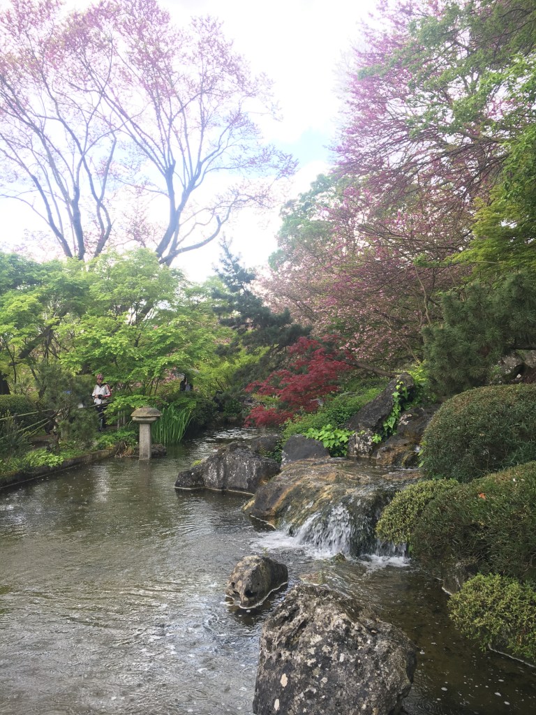 Laghetto del giardino giapponese Orto Botanico di Roma vista ampia